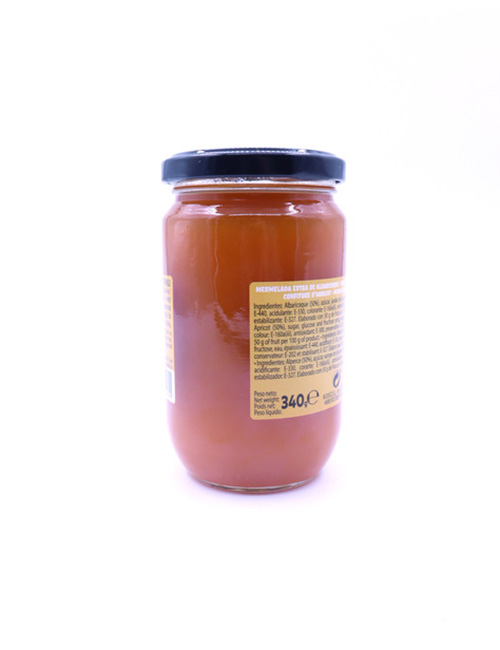 Абрикосы (50%), сироп глюкозы и фруктозы, сахар, вода, загуститель Е440, подкислитель Е330,краситель Е160а/ Энергетическая ценность: 718 кДж/168 ккал. Жиры 0 г., углеводы 41 г. из них сахара 32 г., белки 0 г., соль 0,03 г.