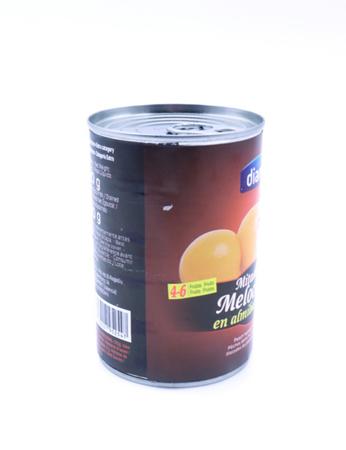 Половинки персика (60%), вода, сахар, фруктоза, подкислитель Е330 / Энергетическая ценность: 265 кДж/63 Ккал. Жиры: 0,0 г., насыщенные жиры: 0 г., углеводы: 14,5 г., сахар: 13,2 г., белки: 0,5 г., соль: 0 г.