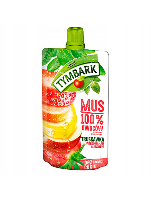 Пюре фруктовое Tymbark КЛУБНИКА-яблоко-банан-морковь, 120 г